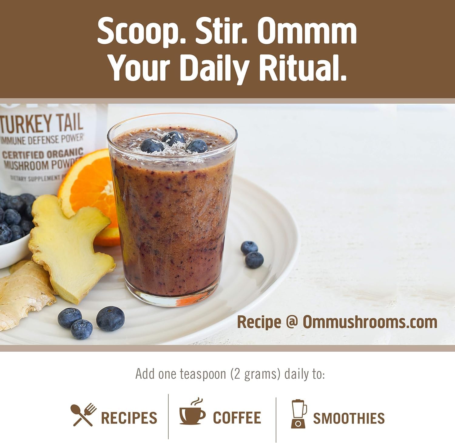 Om Mushroom Superfood Turkey Tail Organic Mushroom Powder, 3.5 Ounce, 50 Servings, Immune Support, Polysacchrides, Beta-Glucans, Gut Health & Holistic Defense Mushroom Supplement