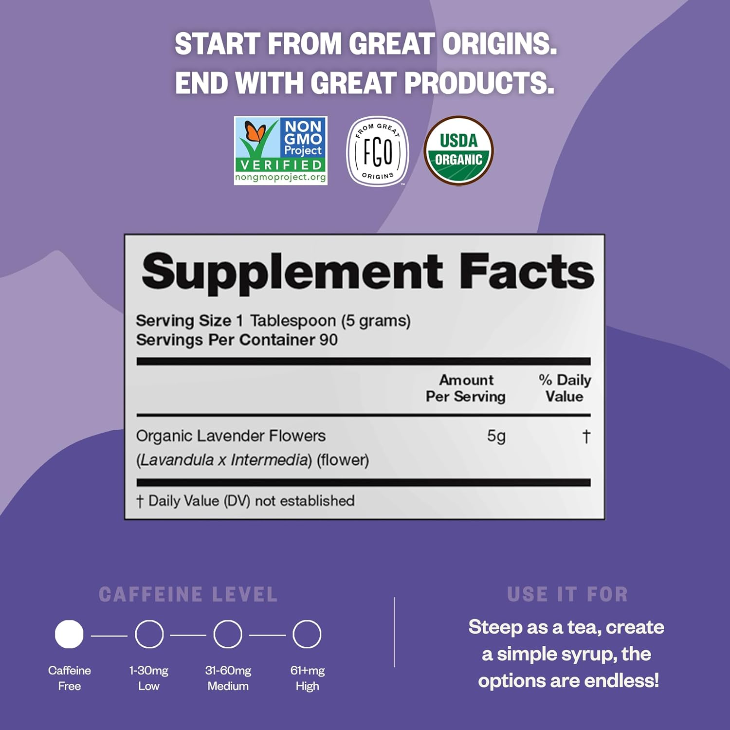FGO Organic Dried Lavender Flowers, Extra Grade Dried Buds, Imported From France for Culinary or Sachet Bags, 16oz Bulk, Packaging May Vary (Pack of 1)