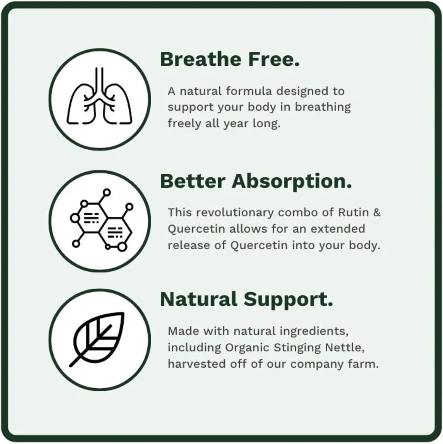 Allurtica | Sinus & Respiratory Support Supplement with Quercetin and Stinging Nettle | Seasonal Support for Adults & Kids | Non Drowsy | 40 Capsules