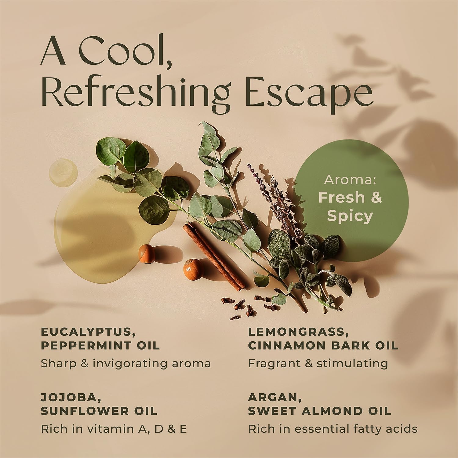 - A natural massage oil. Containing ingredients like argan oil, jojoba oil, sweet almond oil, sunflower oil, eucalyptus oil, peppermint oil, cinnamon oil and lemongrass oil, pamper yourself at any time of the day with our soothing massage oils.