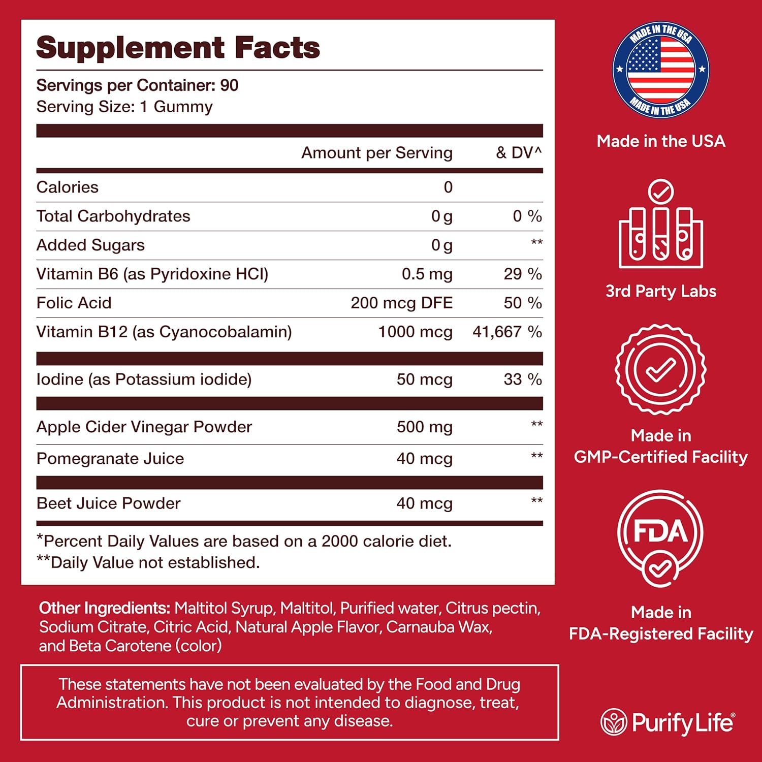 - [Energy & Immune Function Support] With Vitamin B12, B6, Folic Acid, and Iodine to support energy production, immune health, and mental focus.