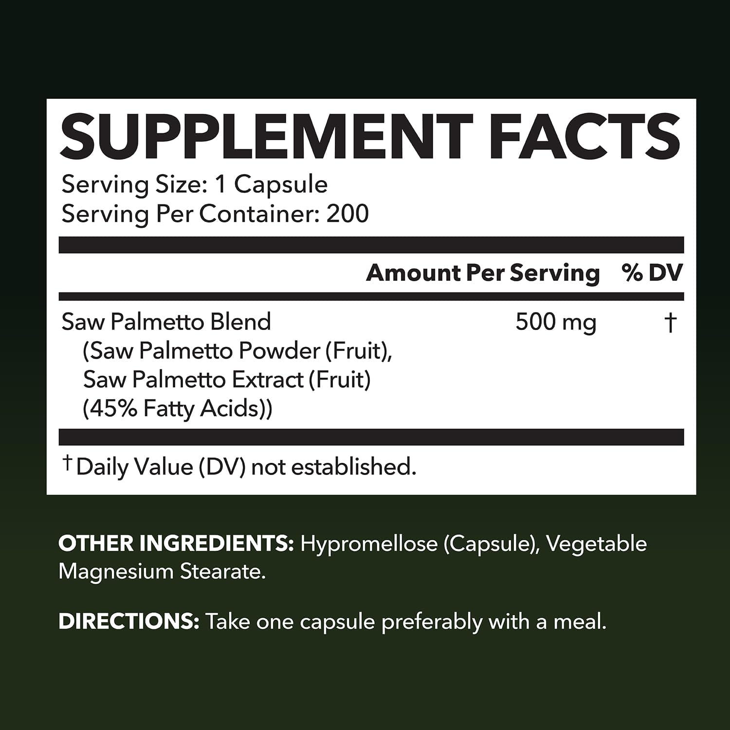 Saw Palmetto for Men Prostate Health Supplement to Promote Urinary Tract Function - 500mg Per Serving - 200 Count - DHT Blocker Hair Vitamin - Vegan, Non-GMO Capsules, Over 6 Month Supply