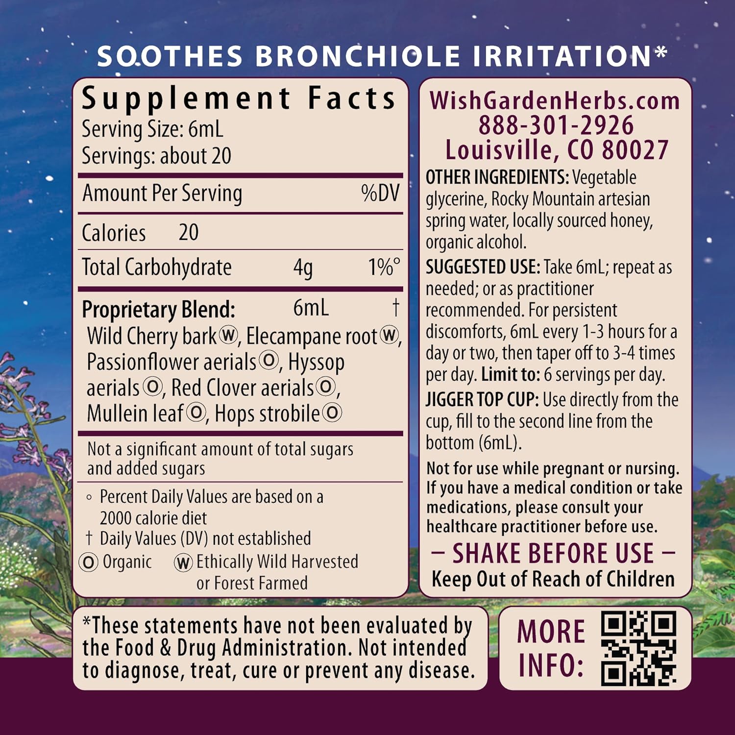 - SUPERIOR NIGHTTIME COUGH SYRUP AND COUGH SUPPRESSANT FOR ADULTS SYMPTOM SOOTHER: This natural cough syrup herbal formula is designed to quiet dry coughs, spasmodic coughs, or rhythmic coughs while soothing tired and sore throats and supporting restful sleep. WishGarden Serious Cough PM Soothing Syrup supports lung health and bronchiole irritation in one powerful cough syrup for adults. Our proprietary blend contains herbs that provide natural expectorant mucus relief and cough suppressant.