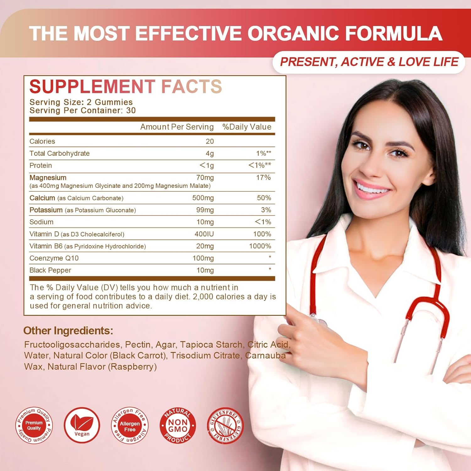 - Made with Wholesome Ingredients: Our magnesium glycinate gummies with magnesium glycinate, vitamins D, B6, calcium, potassium, etc; Added vitamin B6 can help magnesium work better, and Potassium helps support the immune and boosts energy