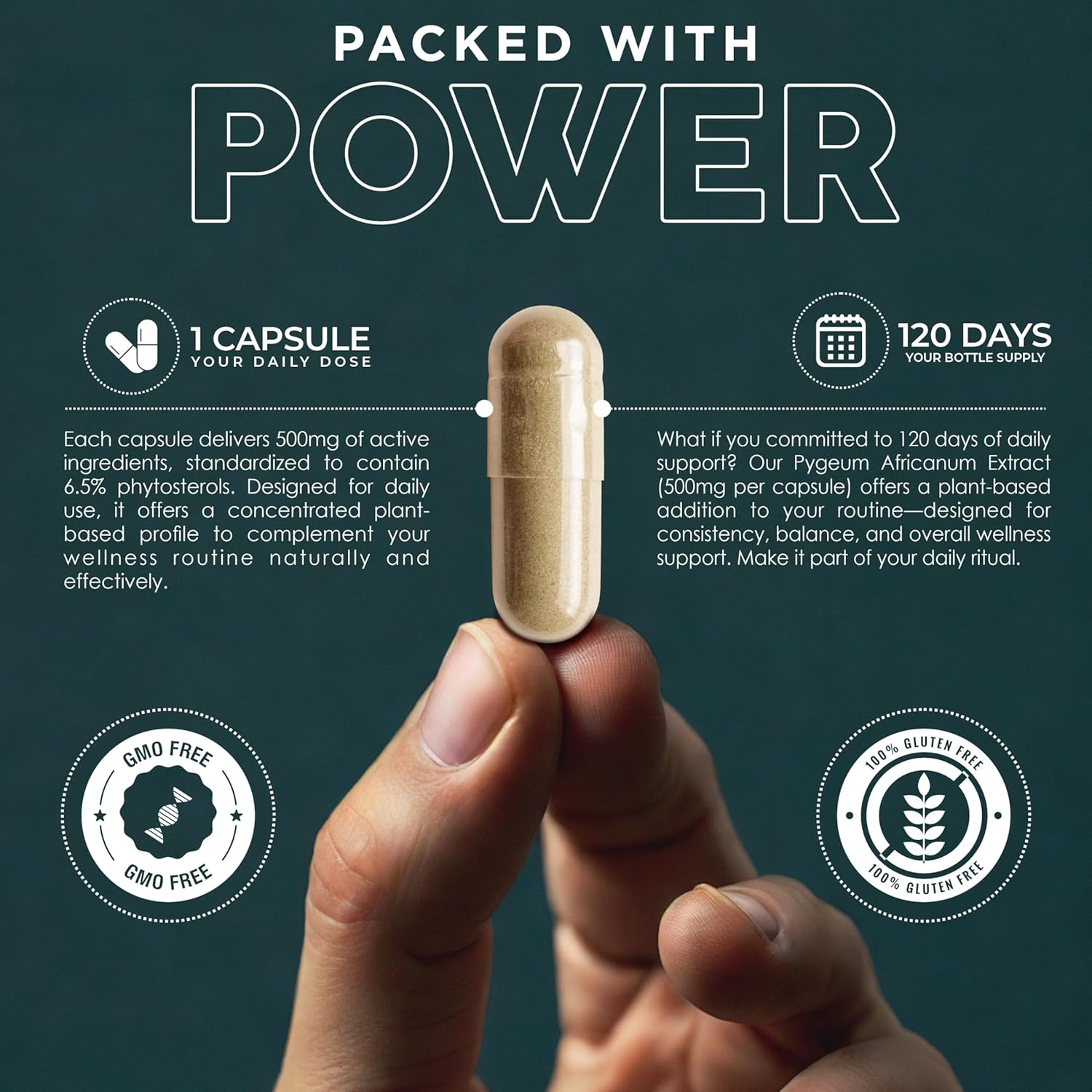 - SUPERIOR QUALITY FORMULATION AND OUTSTANDING VALUE: Each Pygeum Bark serving contains 500mg per capsule and 120 capsules per bottle- Value for Money! We just believe in the need for high -quality supplements demand for today. Compare to other leading brands we focus only on quality rather than quantity. Our each capsule are formulated with natural and organically grown, 100% vegan Ingredients.