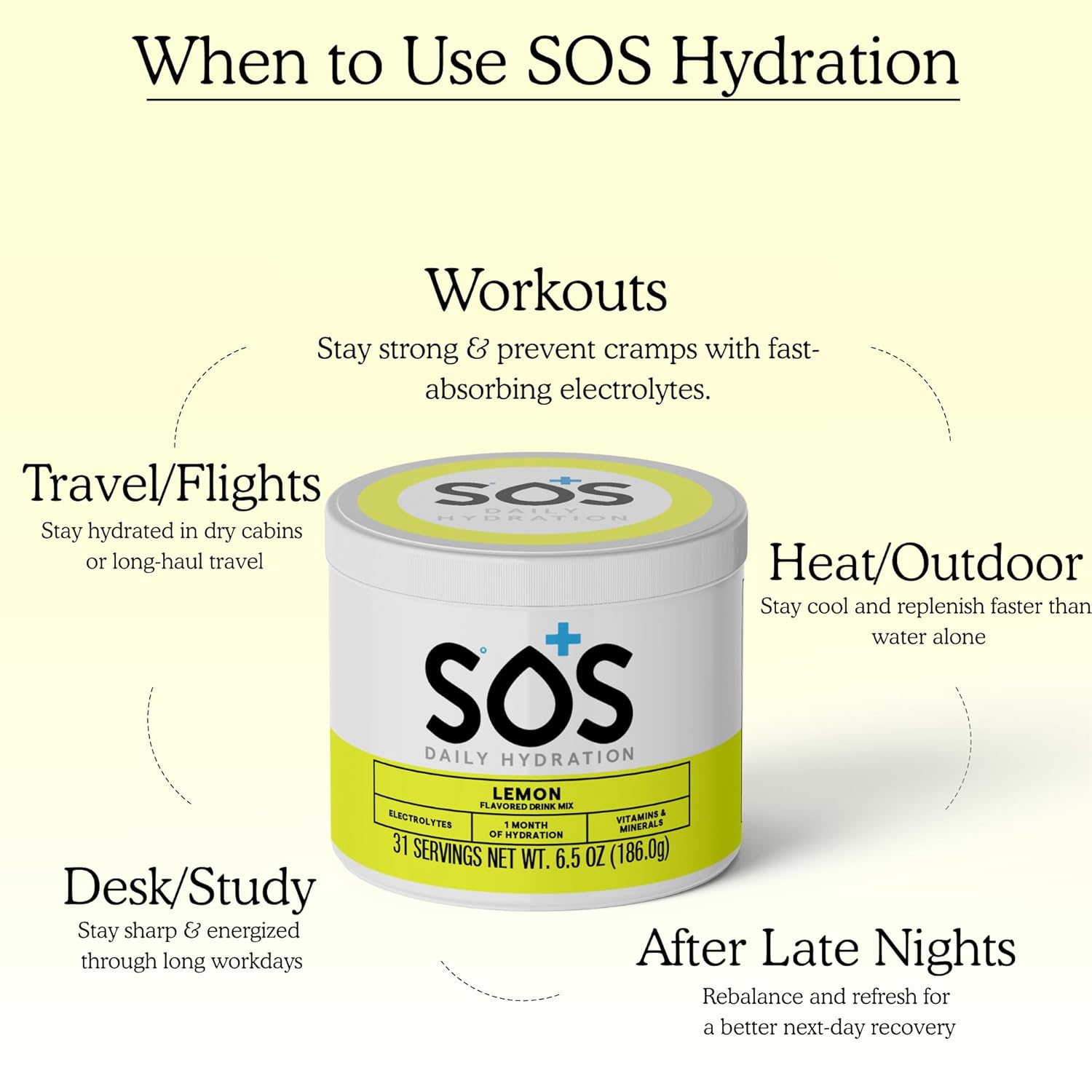 SOS Hydration ORS Electrolyte Powder Stick Packs | Oral Rehydration Solution | Low Sugar | Rapid Rehydration | Made in USA | Keto | Lemon | 31 Servings