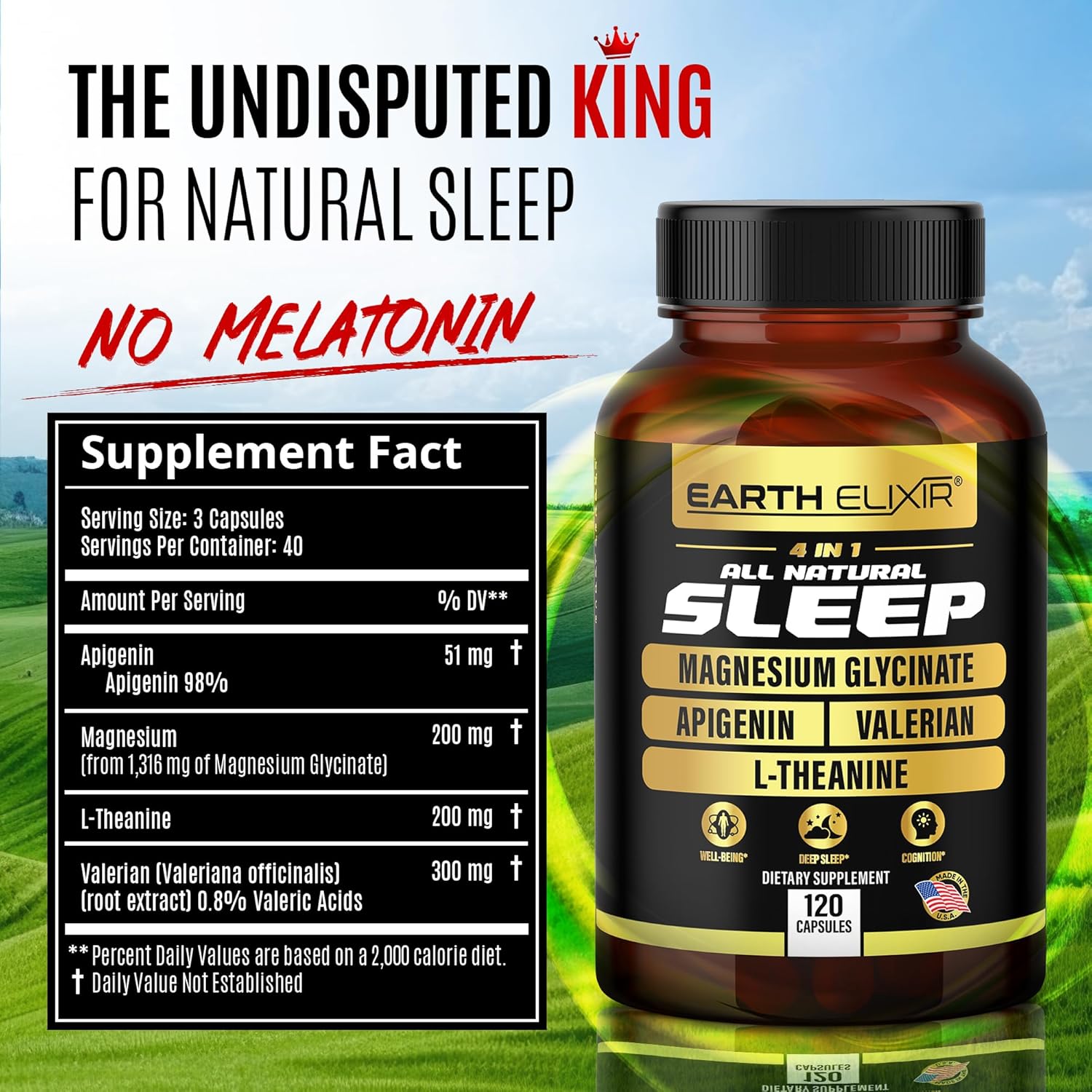 - π€ FEEL FULLY RESTED - Get the consistently deep and refreshing sleep you deserve with Earth Elixir Sleep Supplements for Adults and kids. Our sleeping aid supplement provides essential nutrition containing apigenin 50mg, magnesium glycinate 200mg (superior than magnesium l threonate for sleep), l-theanine 200mg, and valerian root 300 mg capsules for restful sleep throughout the night.