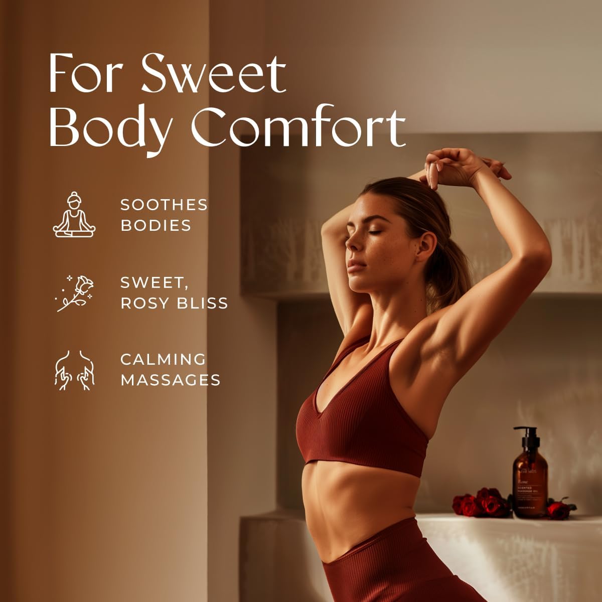 - Deeply moisturizing formula. Our rose body massage oil is known to have moisturizing qualities that may potentially help promote the appearance of smoother-looking skin. Use our body oil for massage on damp skin for better absorption.