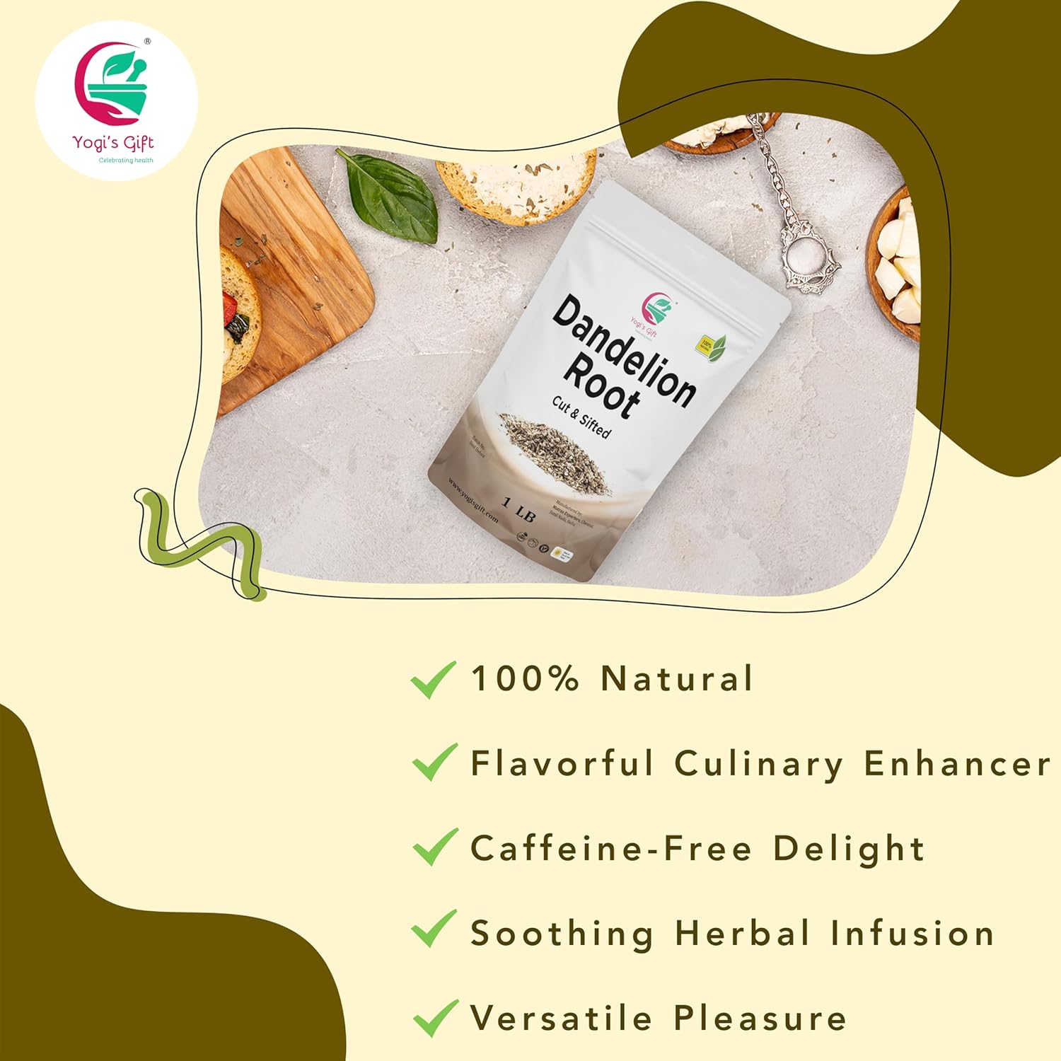 Dandelion Root 1 LB | Cut and Sifted Loose Root | by Yogi's Gift®