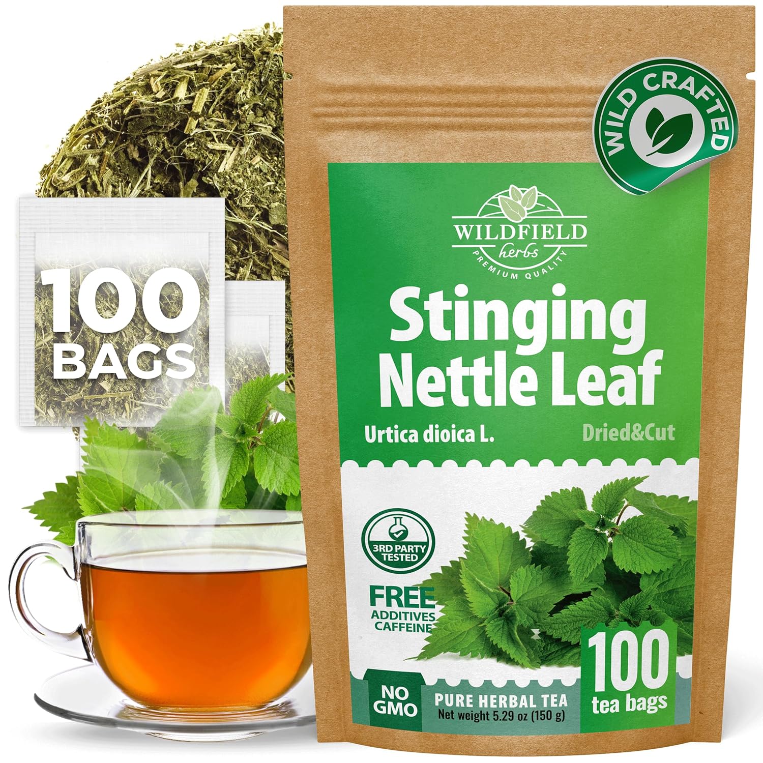 100 Bags Nettle Leaf Tea Ortiga Dried Nettle Herb Planta Bulk (Urtica Dioica) - 100 Count 1.5g Tea Bags Herb Hojas De Ortiga