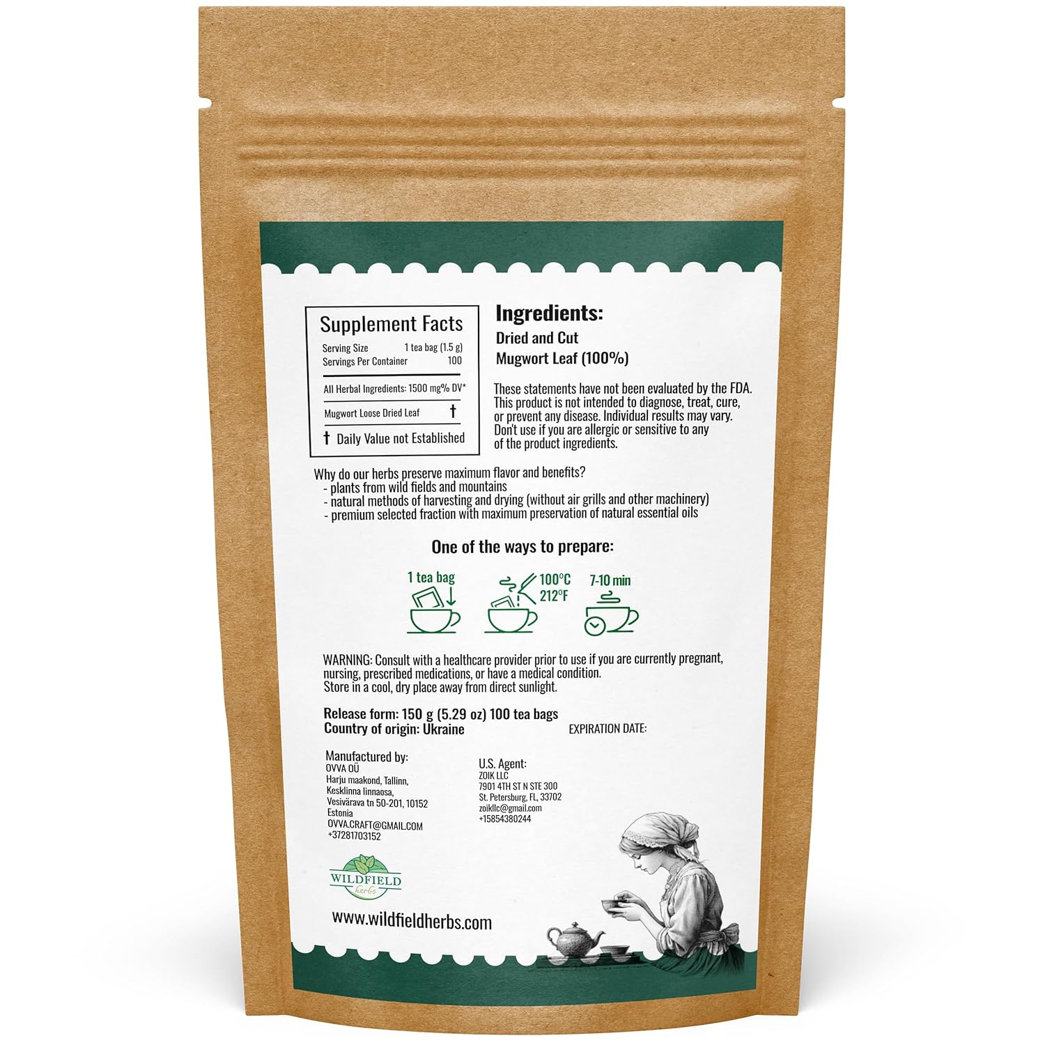 100 Bags Dried Mugwort Tea Mugwort Herb Dried Tea (Dried Artemisia Vulgaris Herb) - 100 Count 1.5g Bags Artemisa