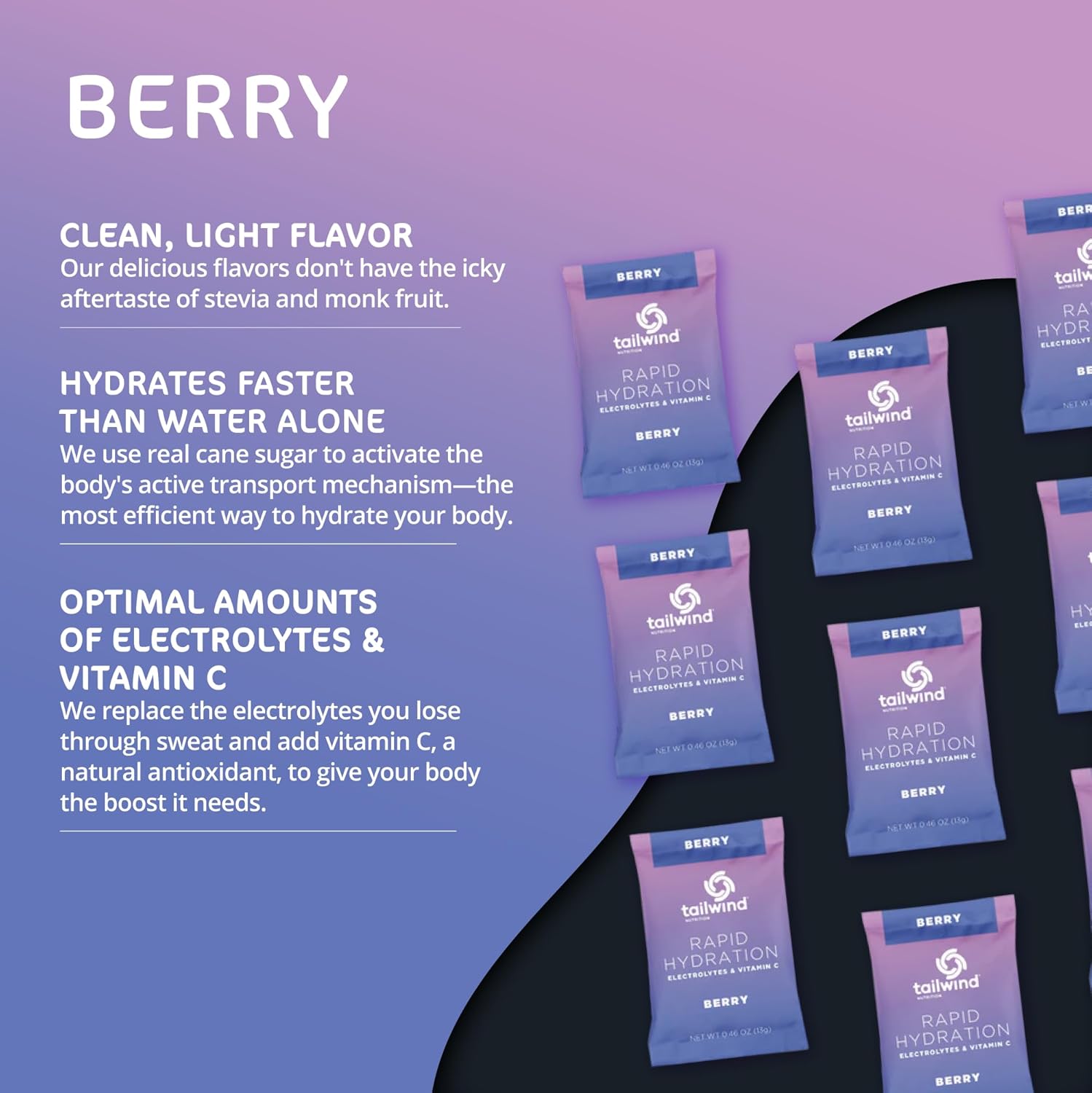 Tailwind Nutrition Rapid Hydration, Electrolyte & Hydration Powder, Vitamin C & Sea Salt Exercise Workout Mix, Berry, Pack of 12 Sticks