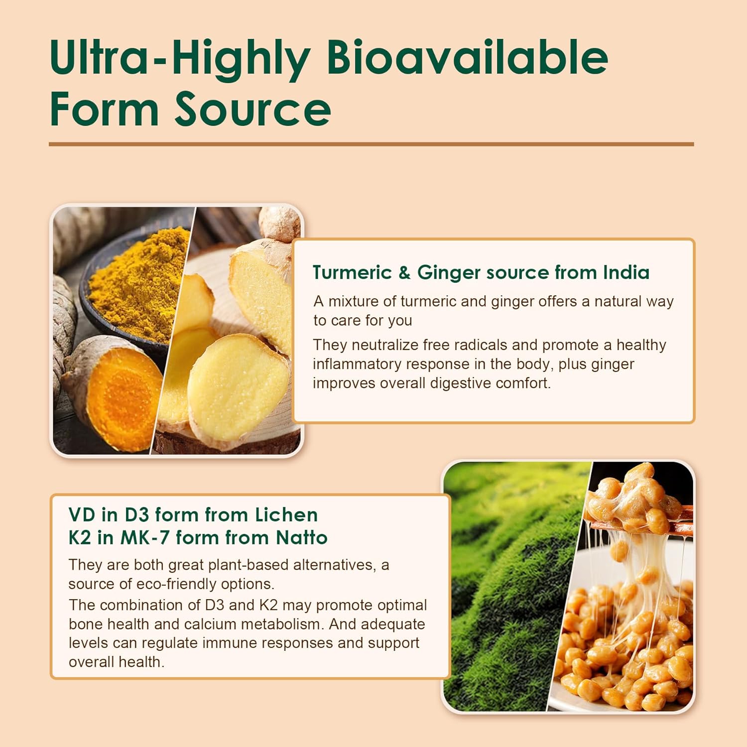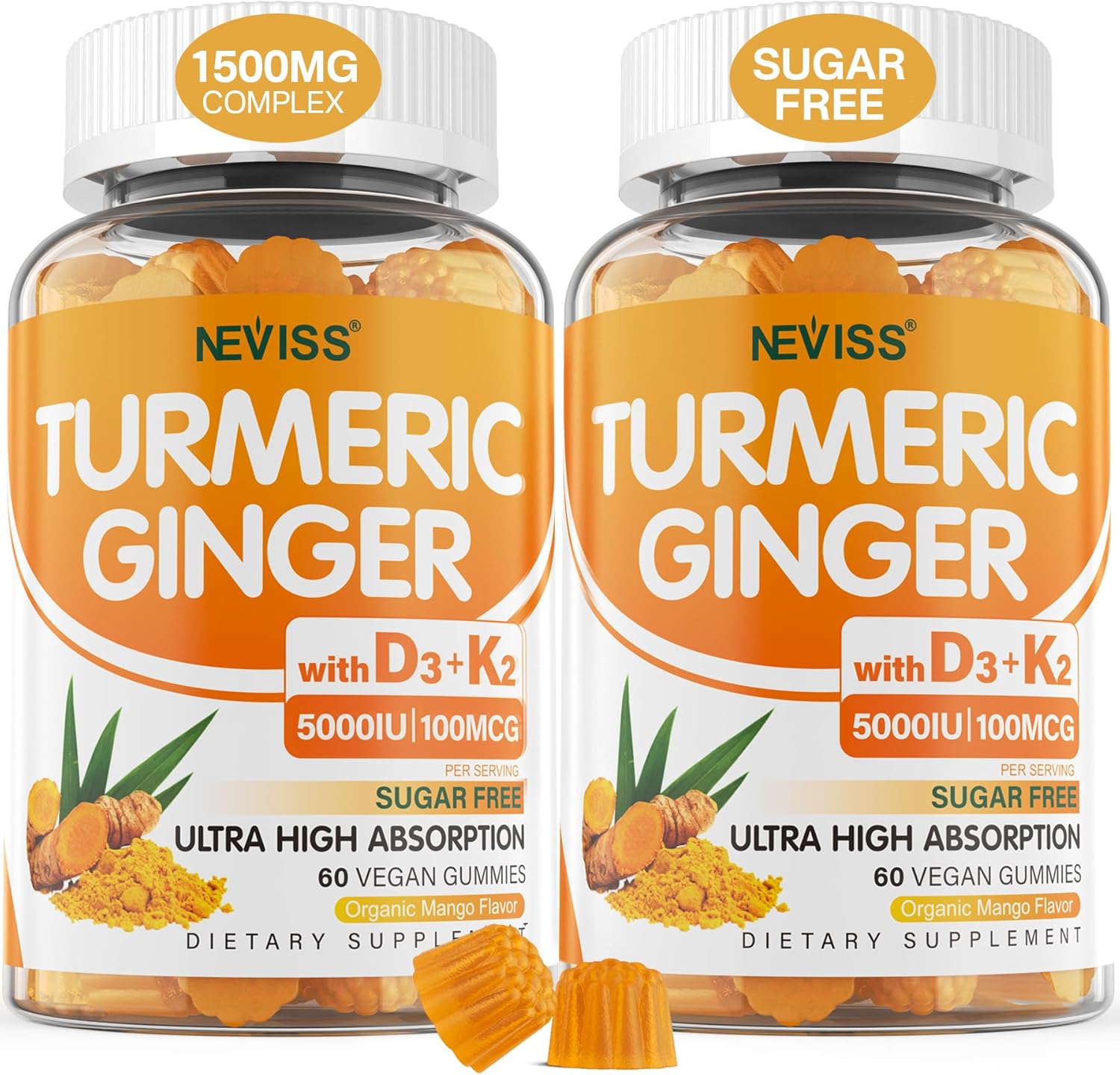 - Supports Bone & Tooth - Neviss Turmeric Gummies provide 5,000 IU of plant-based vitamin D3 and 100 mcg of vitamin K2 (MK-7) to help your body properly absorb and accurately deliver calcium to support strong healthy bones, teeth and muscles.
