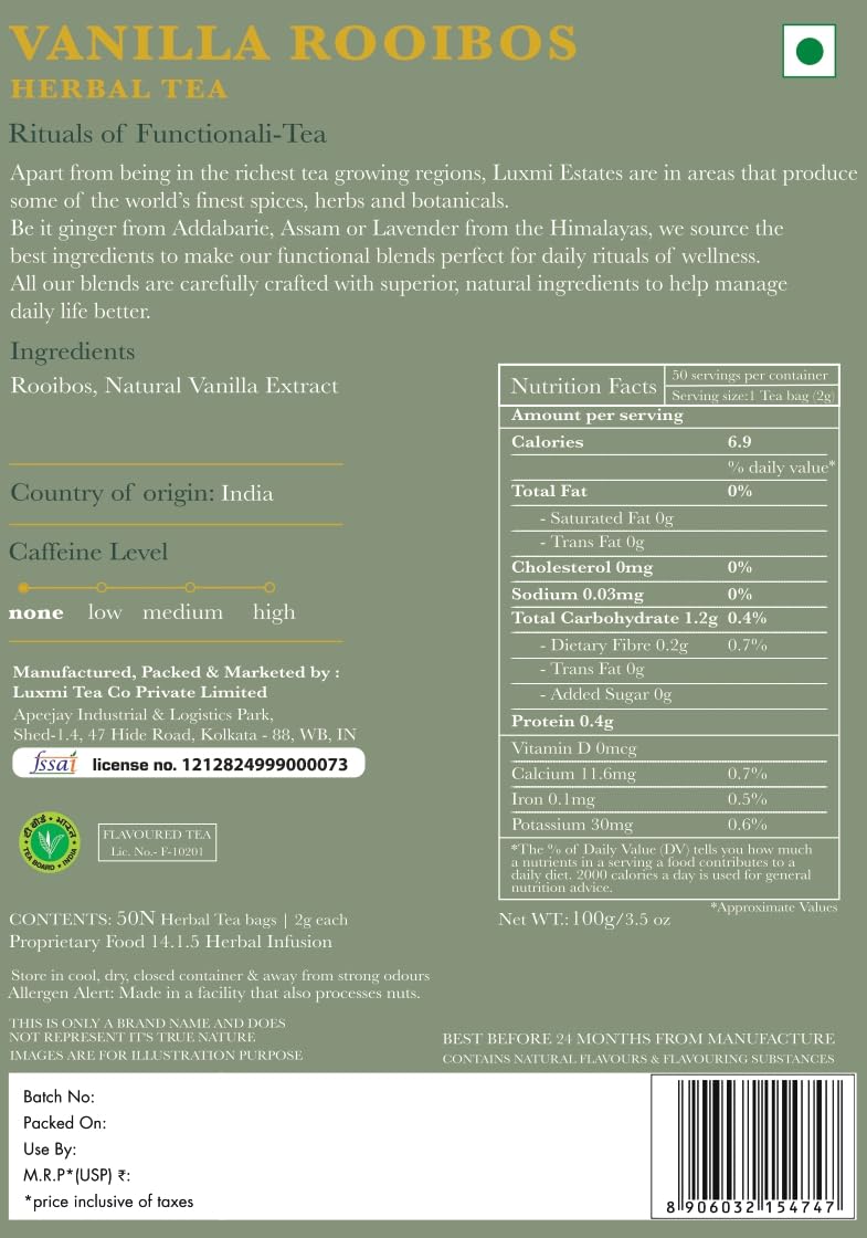 Luxmi Estates - Rooibos Vanilla - Organic Rooibos Tea with Natural Vanilla Extract - Loose Leaf - 100g (50 Cups)| Limited Fall Tea, Calming and Relaxing
