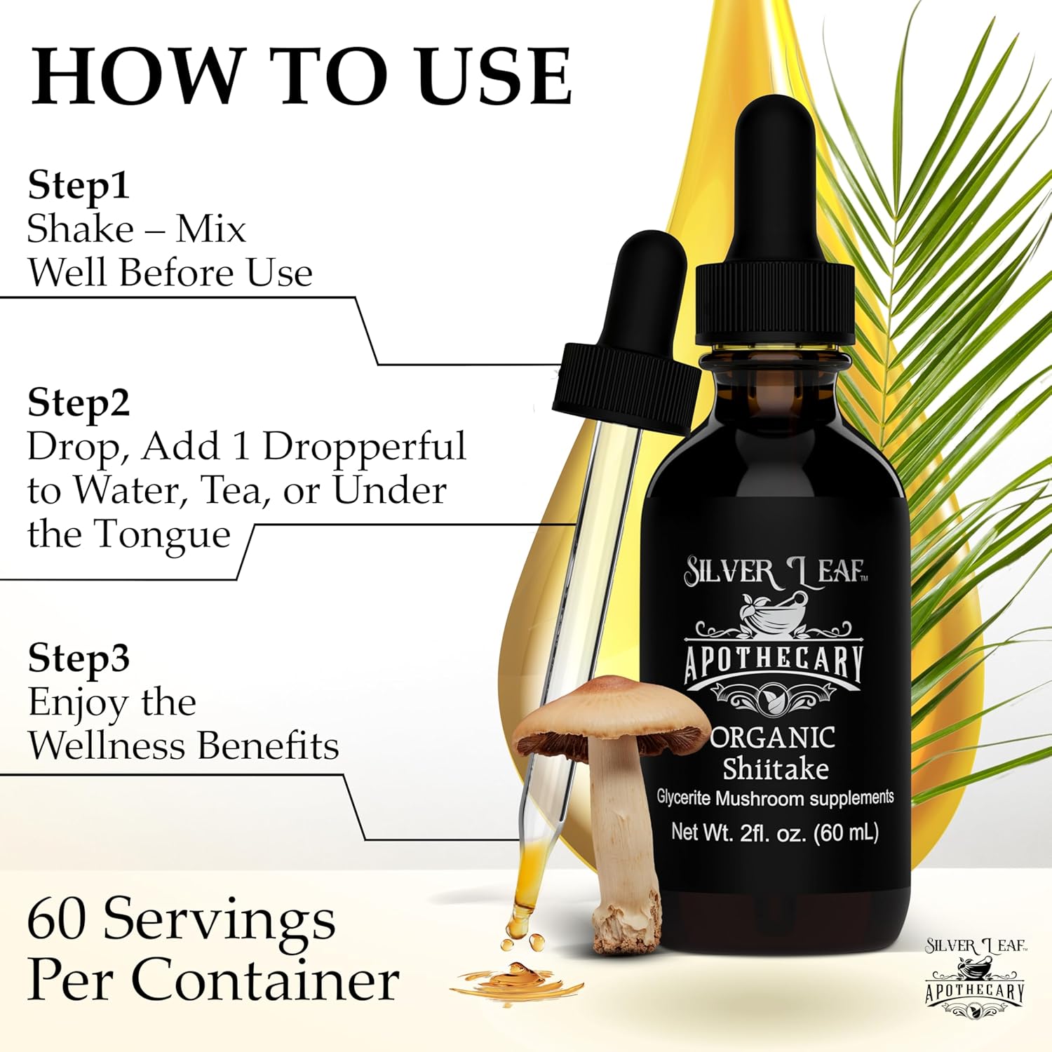 - Convenient & Easy to Use β This 2 fl oz mushroom extract liquid offers a simple way to enjoy Shiitakeβs full range of properties. Just add a few drops under the tongue or mix into your favorite drink for daily support.