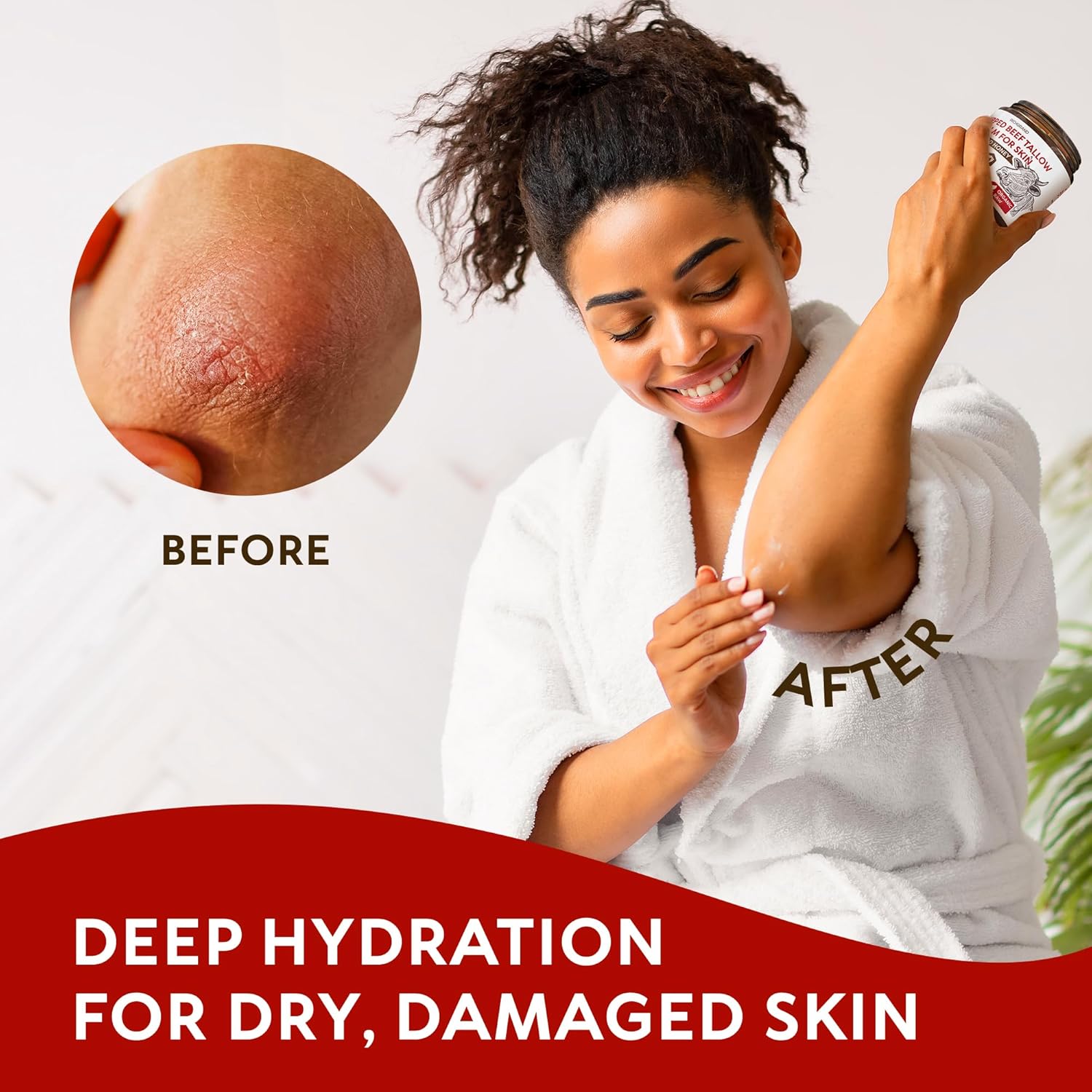 - ANCESTRAL SUPERFOOD FOR SKIN: Replaces complex chemical formulas with one ingredient that mirrors human biology. Our Grass-Fed Beef Tallow shares a lipid profile nearly identical to human skin cells, ensuring instant absorption without clogging pores. Naturally rich in bioavailable Vitamins A, D, E, and K