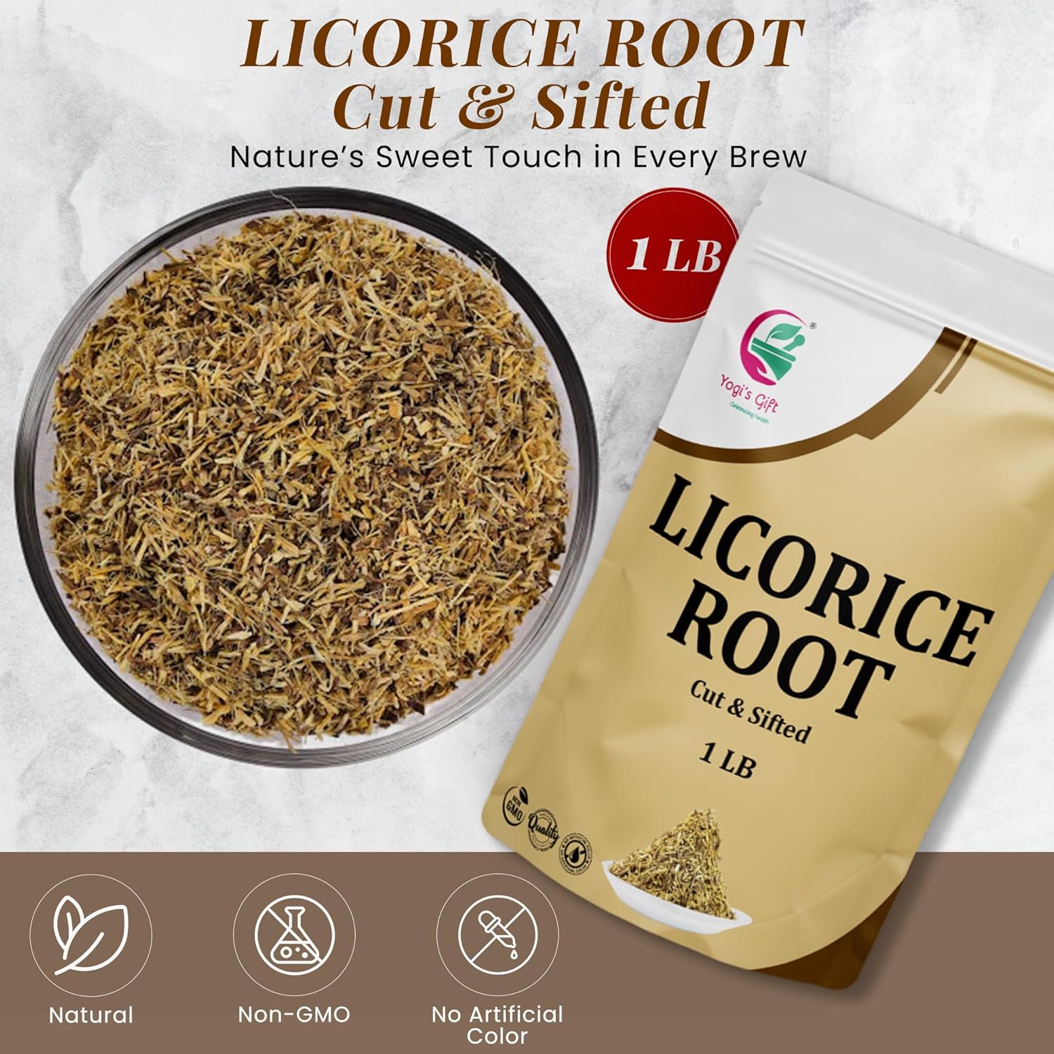 Licorice Root 1 LB, Cut and Sifted, 100% Pure & Natural Dried Licorice Root, Premium Quality, Ideal for Tea, Herbal Blends, and Wellness Uses - By Yogiโs Giftยฎ