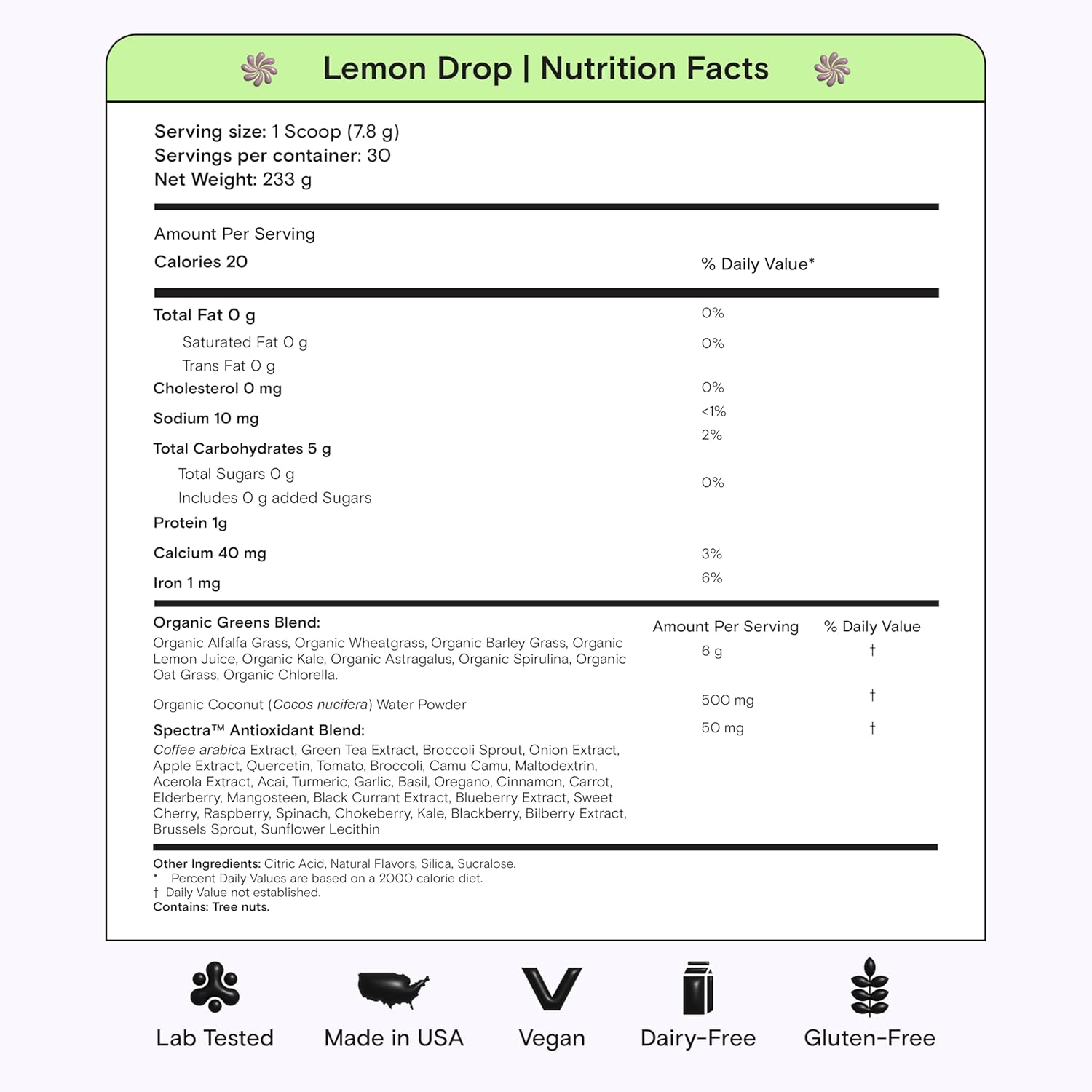 - BALANCED BLEND OF GREENS WITH SPECTRA BLEND: Kiala Nutrition Super Greens powder for women and men features a carefully selected mix of greens, antioxidants, and coconut water powder. Each scoop includes our Spectra blend—a clinically studied formula of 29 fruits, veggies, and herbs—along with organic chlorella, spirulina, wheatgrass, kale, and lemon juice for a naturally balanced greens blend.