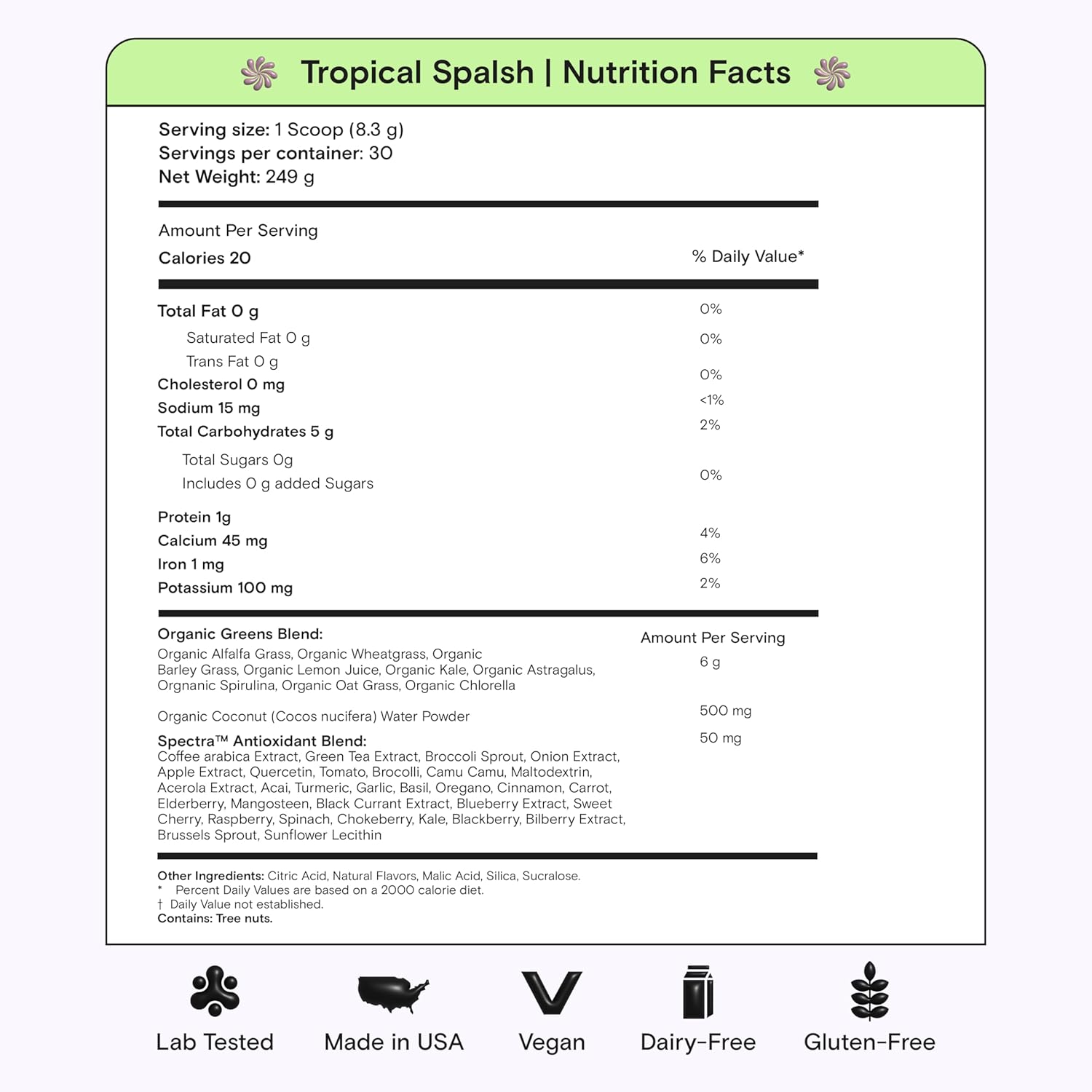 - FILL NUTRIENT GAPS WITH ORGANIC GREENS, FRUITS & VEGETABLES: Kiala Super Greens drink mix combines powerful organic greens like alfalfa, wheatgrass, and spirulina with organic fruits, vegetables, and antioxidants to help support daily nutrition. Backed by published human studies, Spectra is designed to aid nutrient absorption, making this blend a clean, effective choice. Each serving is gluten free, vegan, soy free, and dairy free, providing trusted quality with every scoop.