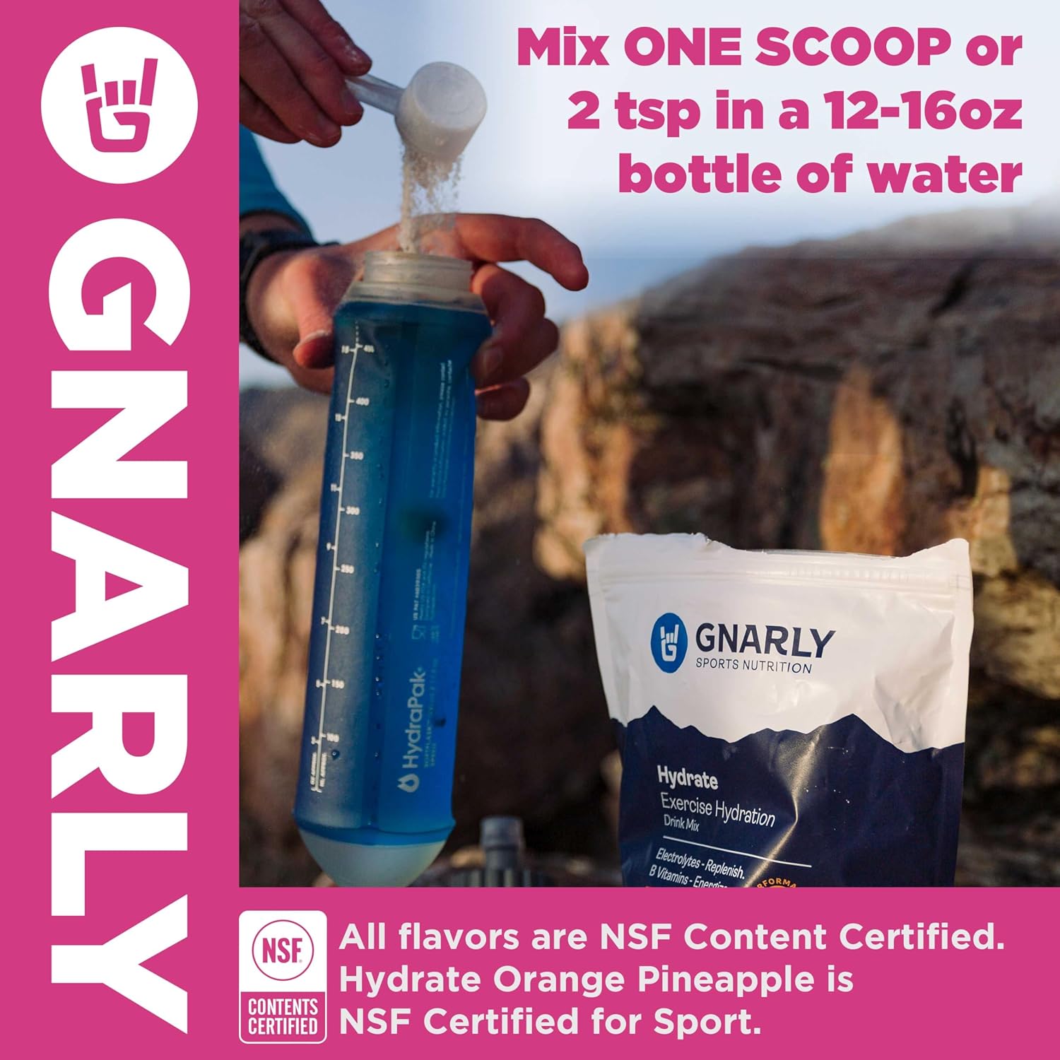 - Easy Hydration – Gnarly Hydration has just enough sugar to effectively deliver electrolytes without causing gut discomfort. Mix 1 scoop or 2tsp in a 12-16oz bottle of water.